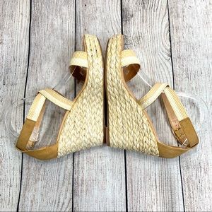 Tan and cream sandal wedges with woven straps by Dolce by Mojo Moxy. New without box.