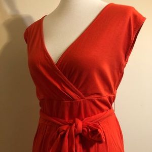Gently used and in excellent condition. Ties at the waist and is a faux wrap style. Pulls on. No zippers. Size medium petite. Measures approximately 18” across from pit to pit when laid flat and 33” long. Material is 60% cotton and 40% modal. Machine washable.