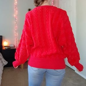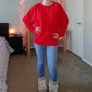 fall winter break christmas party outdoors cozy layer vibrant cute thick soft girly bright red vsco hipster boyfriend retro big oversized riding boots weekend chic casual knit snow day sleigh ride ice skating thanksgiving chunky sparkle sparkly dolman batwing sleeves crew neck ribbed trim