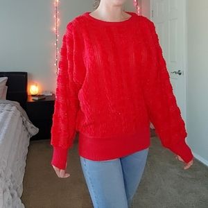 Classic red vintage chenille gold tinsel sweater