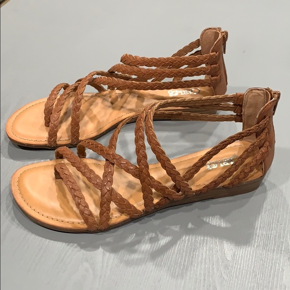 Strappy fabric upper features a braided design.
