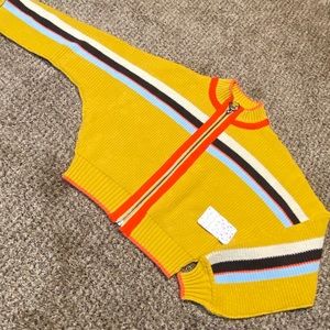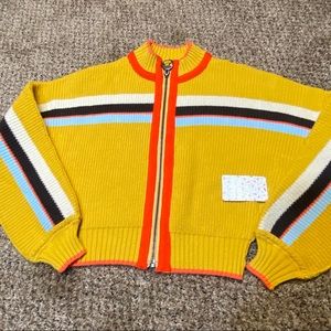 Free People Ready Set Go Striped Cardigan. Size S. Yellow base. Sleeve volume plays up the cropped cut of this knit cardigan outlined in sporty stripes.