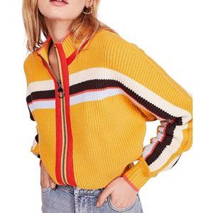 NWT Free People Striped retro-style zip-up Sweater
