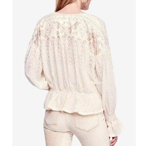 winkle, twinkle little top. Free People's cotton poet blouse features a raw peplum waist and delicate print in gold-tone sparkle.