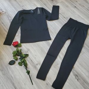 This is the ultimate outfit for fall and winter super soft and stretchy and fleece lined to keep you warm. Nice ribbed high waist to keep u nice and compact.So cute and comfy on. I love this outfit, I have it in large like 4 sets Its awesome New in package with tags from a smoke free home