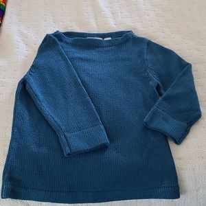 This is a dark teal, 3/4 sleeve sweater.
