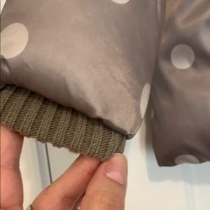Old Navy puffer jacket with front zipper, two side pockets and hood. Goldfish color with lighter polkadots. EUC
