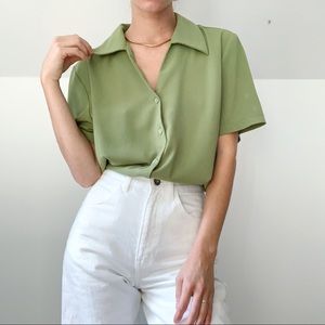 Vintage olive green retro 60’s 70’s collar button down blouse.