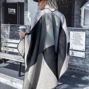 fall color block open front kimono poncho cardiga