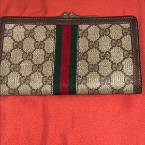 GUCCI, ITALY, VINTAGE TRI FOLD W. GREEN/RED STRIPE
