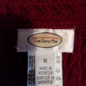 This is a heavy sweater that has a front zipper and 2 small zippers on the sleeves. It has a very pretty pattern and will be great for a cold day. Dark Burgundy color.