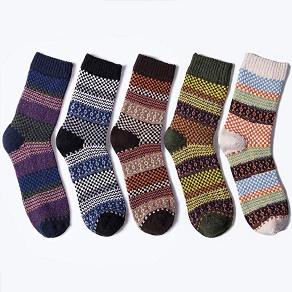 5 Pairs Men's Vintage Cony Hair Crew Socks