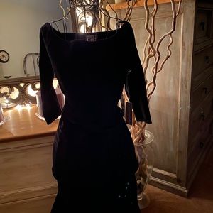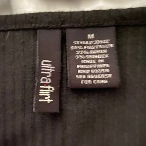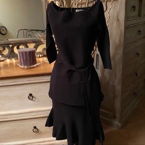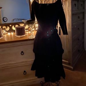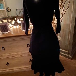 Ultra flirt Black long sleeve dress. It has a belts and ruffles at the bottom of the dress. It’s a knit material and soft.