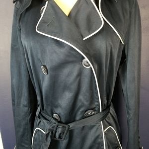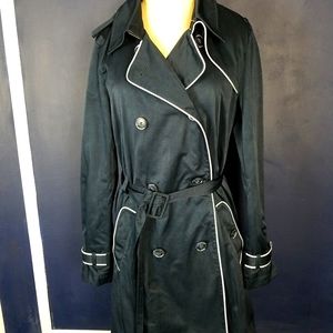 Vineyard Vines Womens Navy Blue Long Lightweight Trench Coat. Pretty blue and white striped lining. Belted. White detail. Cuffs are adjustable. Tiny flaw on left shoulder, see photo. Size 6. Condition is "Pre-owned".