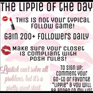 A LIPPIE POSHER who has A LOT of BLUES for you! Share 10 of their items. NO LIPPIE should share back. They are giving you BLUES to Gain Followers 💋