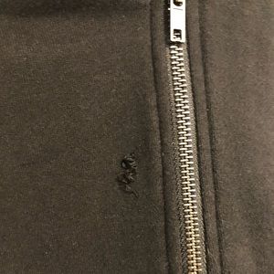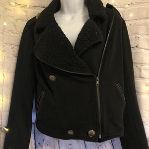 Black XXI bomber jacket. fleece & polyester lining on the inside. One tiny hole in the front near zipper, otherwise in good condition