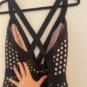 Chapou Black Semi Sheer Graphic Net Maxi Dress