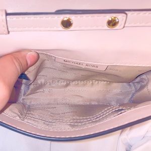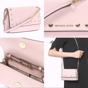 This blush pink MK “Ruby” bag is **SUPER RARE** & SO GORG!!! Made of smooth leather in a light pink/nude with gold tone hardware & gold heart studs on the front. It has a magnetic snap closure & a removable/adjustable crossbody strap. Only used once & in perfect condition —no flaws!