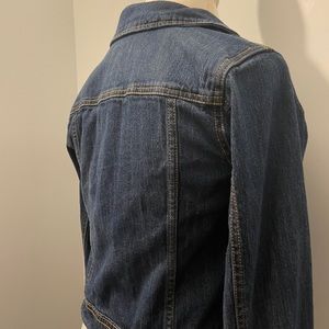 Navy blue denim jacket with copper buttons