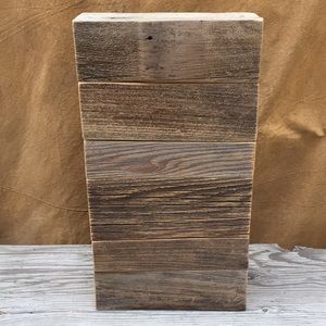Handmade wooden accent shelf, perfect size for essential oil bottles! Made here on our homestead from reclaimed weathered barnwood from the Oregon countryside. Farmhouse, country, rustic style. Shelf can be mounted with either side up, depending on your preference if you want the knot hole on he top or bottom. Mounting hardware not included.