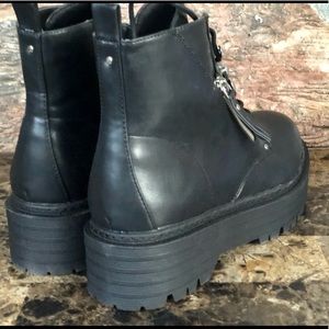 Combat style gets a fashion-forward lift in the chunky platform and exposed zipper detailing on the bold Mash booties from Madden Girl.