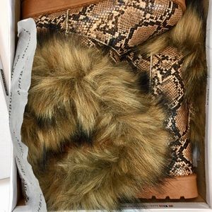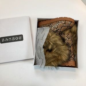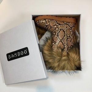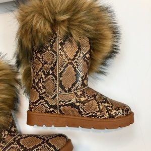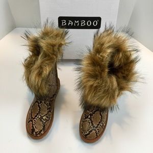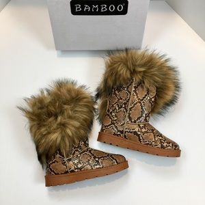 Bamboo Frozen Furry Python Print Lug Sole Boots