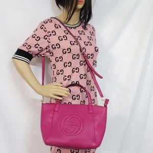 Auth GUCCI Soho Fuchsia Calfskin Crossbody Bag