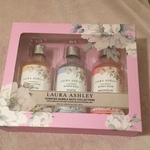 Laura Ashley Scented Bubble Bath Collection, NWT includes three 9.4 oz bottles of luxurious bubble bath with magnolia blossom, white iris & country lily scents. Beautifully packaged!