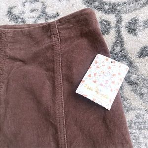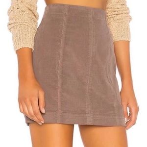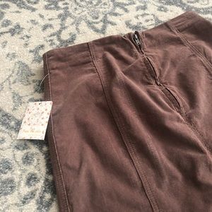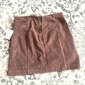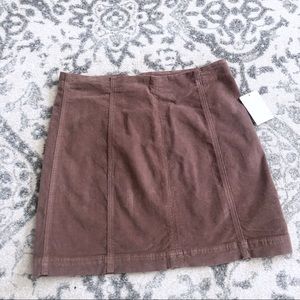 Free People Modern Femme brown corduroy mini skirt. Brand new with tags but does have some areas of **damage on the back of skirt- small area with bleach spot on back of skirt and area below zipper where thread is missing.**