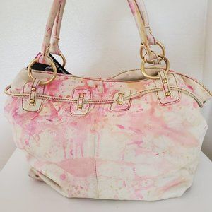 Barneys New York Leather Purse Handbag Orange pink ivory white tie dye tote bag