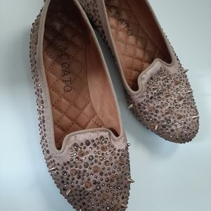 Pink satin jeweled flat from staccato. No Mark's it missing pieces. Leather quilted interior. Size 225 (1.5)
