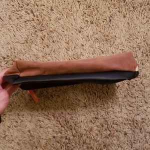 •The Front of the bag is light orange, tan & brown. The back of the makeup bag is black, the Zipper is in perfect working condition.
