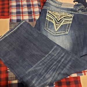 Gorgeous accents on the back pockets as well as the crystal buttons on the back and front.