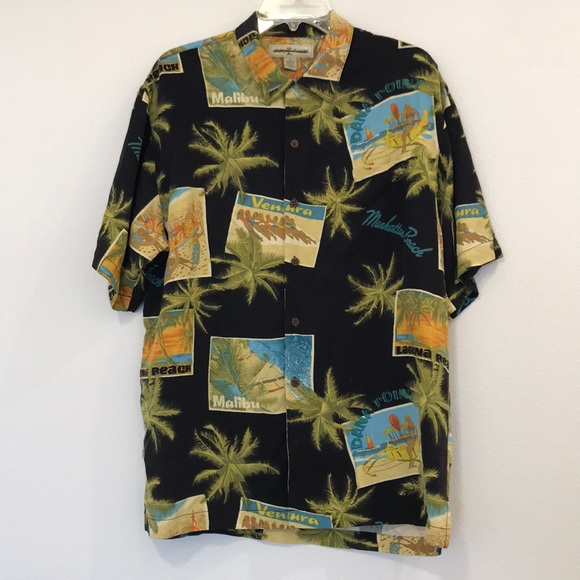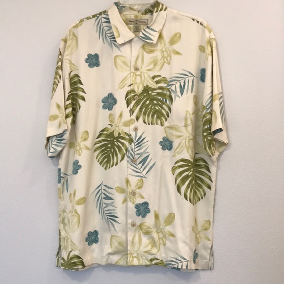 Tommy Bahama Camp shirt. They are size medium. The are 100% silk. Machine washable. In like new condition. Pet free/smoke free home.