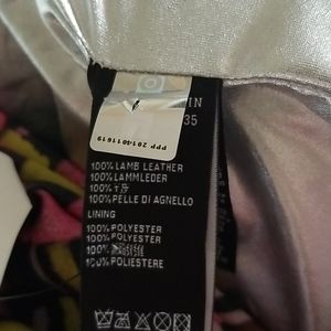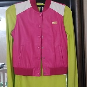 Eye-catching pink skull leather vest. Note: This is a sz 14 petite (see pics) but is more of a child's large. Petite, as shown on tags. Silver Lining. Paired with 2 different shirts, not included, to show you options (macaroon shirt is for sale in additional listing)