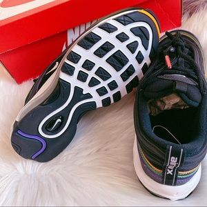 The iconic Nike Air Max 97 "Black/Multicolor" Women's Shoe made a splash in the running world when it was released over 20 years ago. That reputation is still going strong, featuring the original details that made it a classic: water-ripple lines, stand-out piping and the first full-length Max Air cushioning.
