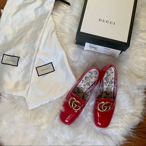 GUCCI Red Patent Vernice Block Heel GG Pumps