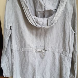 A lightweight grey-silver jacket with hood, excellent condition, just dry cleaned it! It has a shimmering in the appearance!!