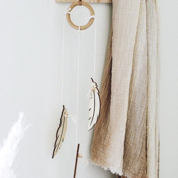 Wooden Feather Dream Catcher Wall Hanging/Boho Decor/Styling Accessory/Natural Wood Display/Nursery Decor