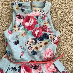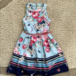 ☀️🌜✨EUC Copper Key blue, floral dress with pink belt and tulle under the skirt. Size 10 kids☀️🌜✨