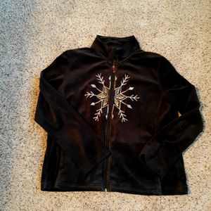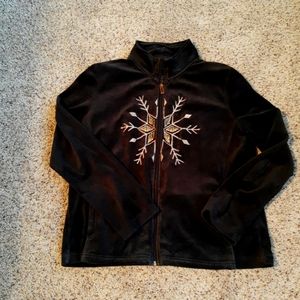 Velour zippered jacket with a gold snowflake on front. Side pockets. New Excellent Condition & a Unique Find!!!❄️