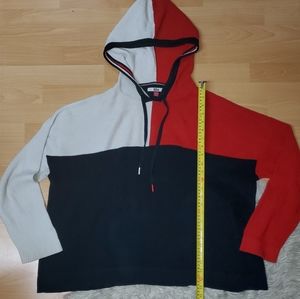 Tommy Hilfiger sweater with a hood/ hoodie, oversized, vintage, colorblock design, 100% cotton, size XXL, comfortable, logo on sleeve cuff, excellent condition, no flaws