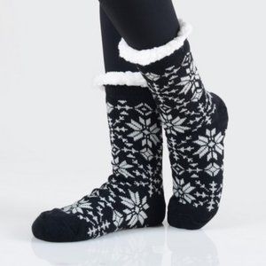 Black Rowan Snowflake Sherpa Lined Slipper Soc