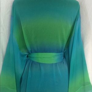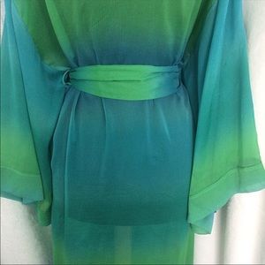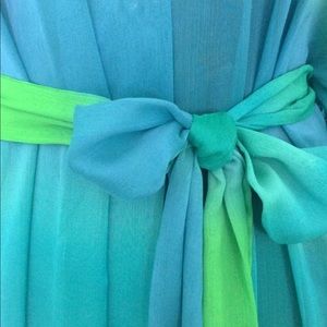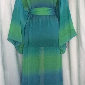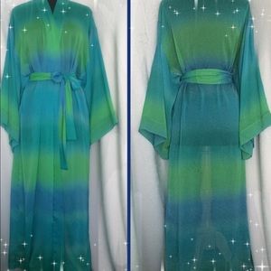 Vintage Blue & Green Semi Sheer Long Robe Medium