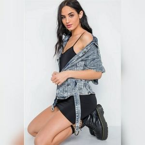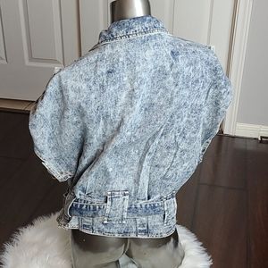 Vintage 80s style Retro Light Blue acid wash Denim Jean Jacket