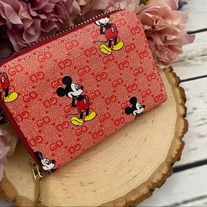 Red Mickey Mouse Vegan Leather Zippered Wallet
