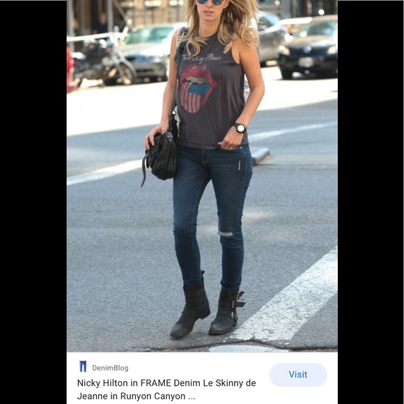 Skinny mid-rise and stretchy. Runyon Canyon Wash. Lightly worn-only imperfection is the hole appears to have “distressed” more than the factory cut - pictured in last photo. Still looks good given that’s the look ok this cut. As seen on Nikki Hilton!