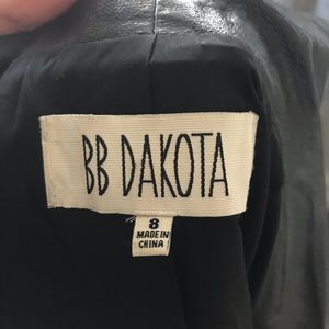 Cute BB dakota blazer size 8. It has an edgy faux leather lapel 2 front pockets and gun metal zippers on the sleeves. In great used condition.