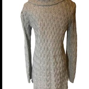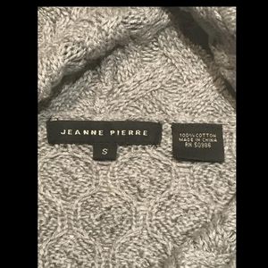 Jeanne Pierre Small Grey Cowl Neck Cable Knit Tunic Sweater With Pockets %100 Cotton