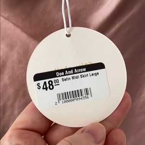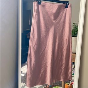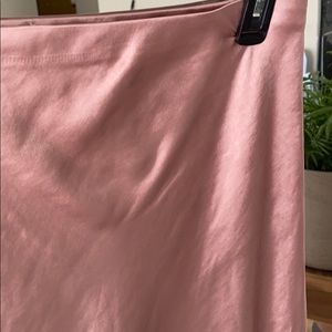 Cute Pink satin skirt. I’m 5’8 and it hits just below the knee when worn high wasted. Never been worn! Tags still attached.